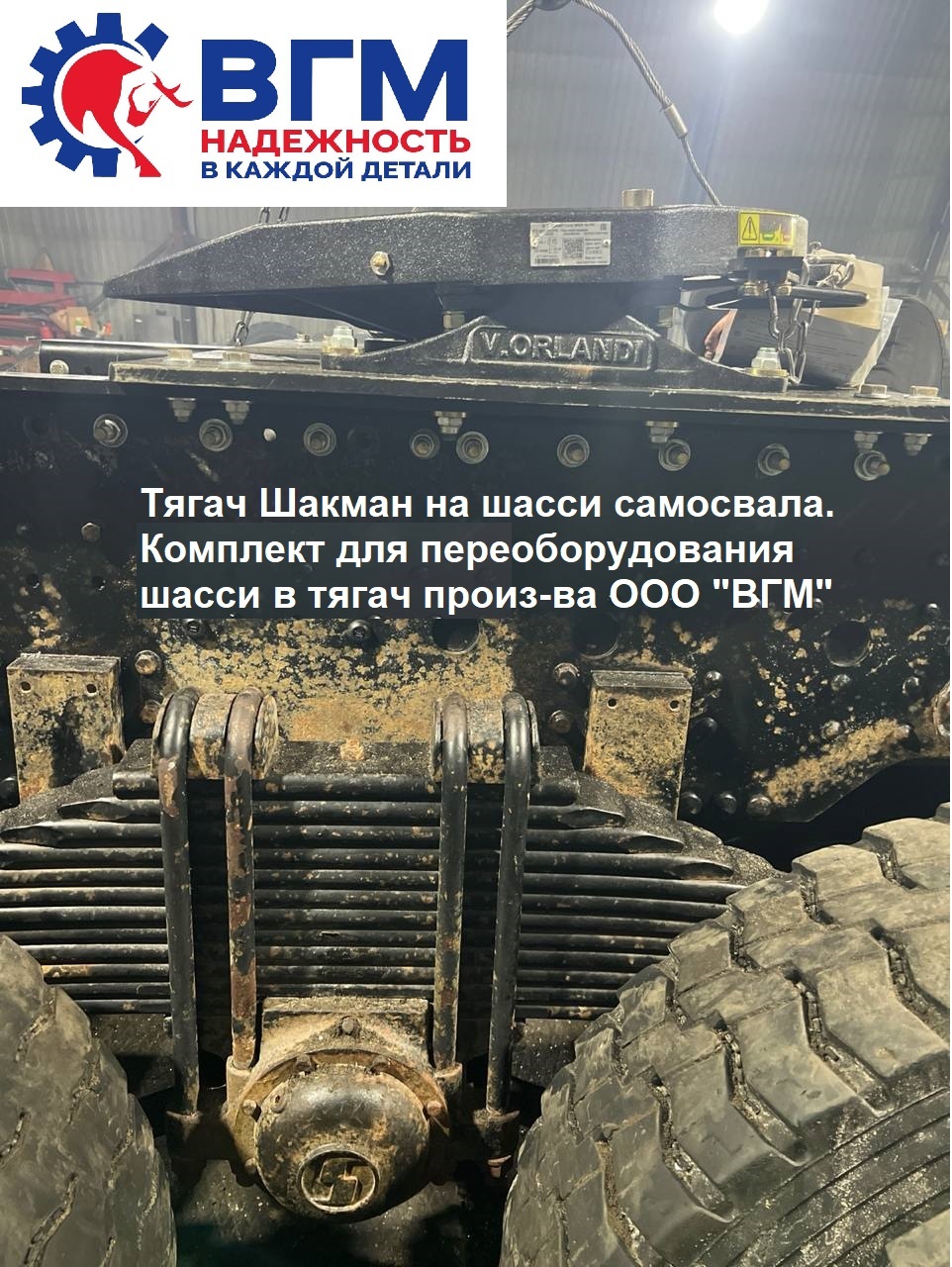 Осенью 2025 года ООО ВГМ спроектировало, изготовило и отправило покупателю в Ямало-Ненецкий А.О. полный комплект деталей для переоборудвания самосвального шасси Шакман в тягач. Комплект включает в себя Z-образные профили, усиленную монтажную плиту толщиной 16мм, седло V.Orlandi, весь необходимый для установки крепеж. Детали комплекта имеют все необходимые отверстия для легкого монтажа. Для крепления к шасси используются штатные щеки кузова на раме. Совместно с заказчиком была определена оптимальная конструкция комплекта соответствующая планируемым нагрузкам, требуемой высоты седла тягача и минимальной трудоемкости установки.